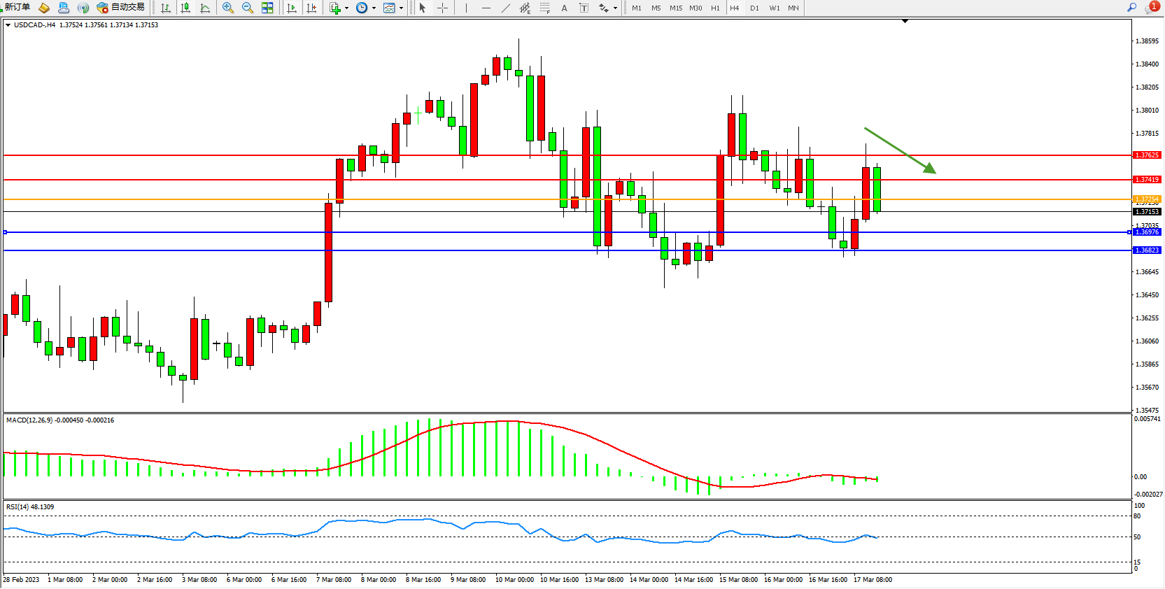 交易策略:1.37254下方看跌,目标1.36976  1.36623