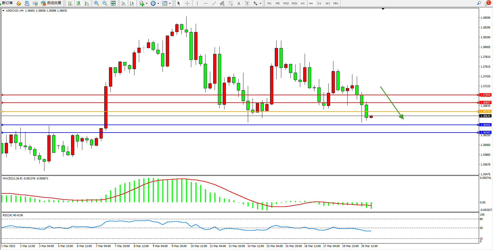 美元加元USDCAD——4小时K线图显示: