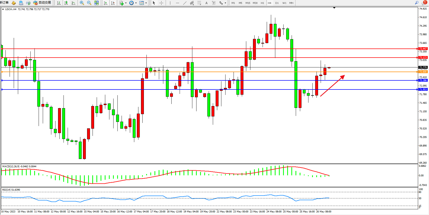 交易策略:72.600上方看涨,目标73.123 73.447