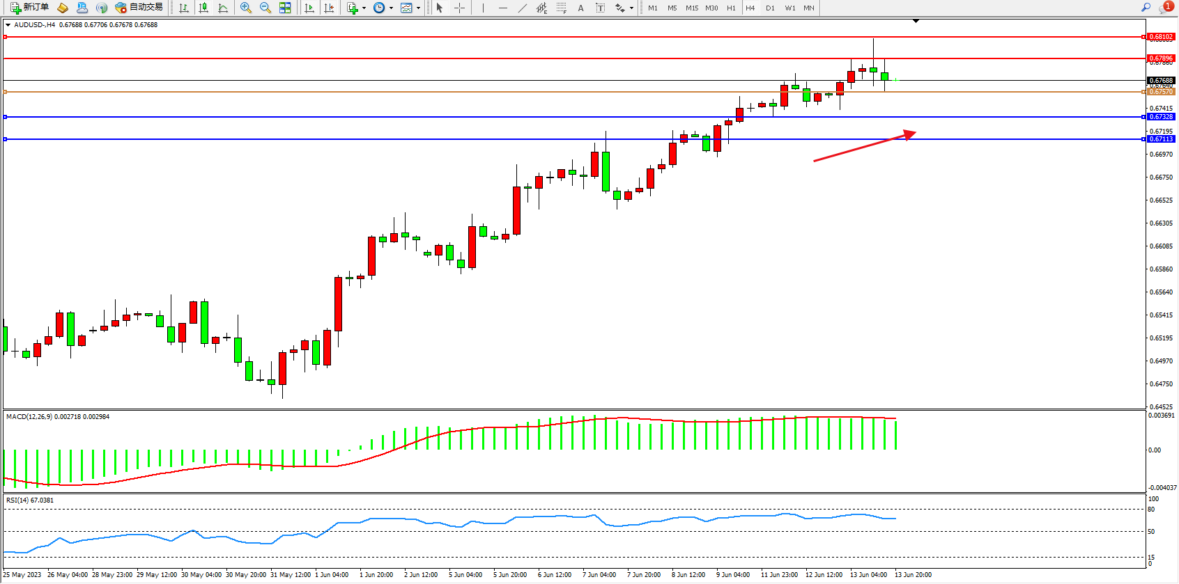 阻力位:0.67896 0.67102