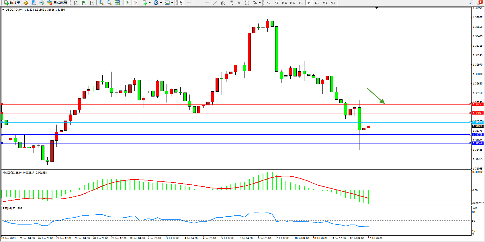 澳元美元AUDUSD——4小时K线图显示: