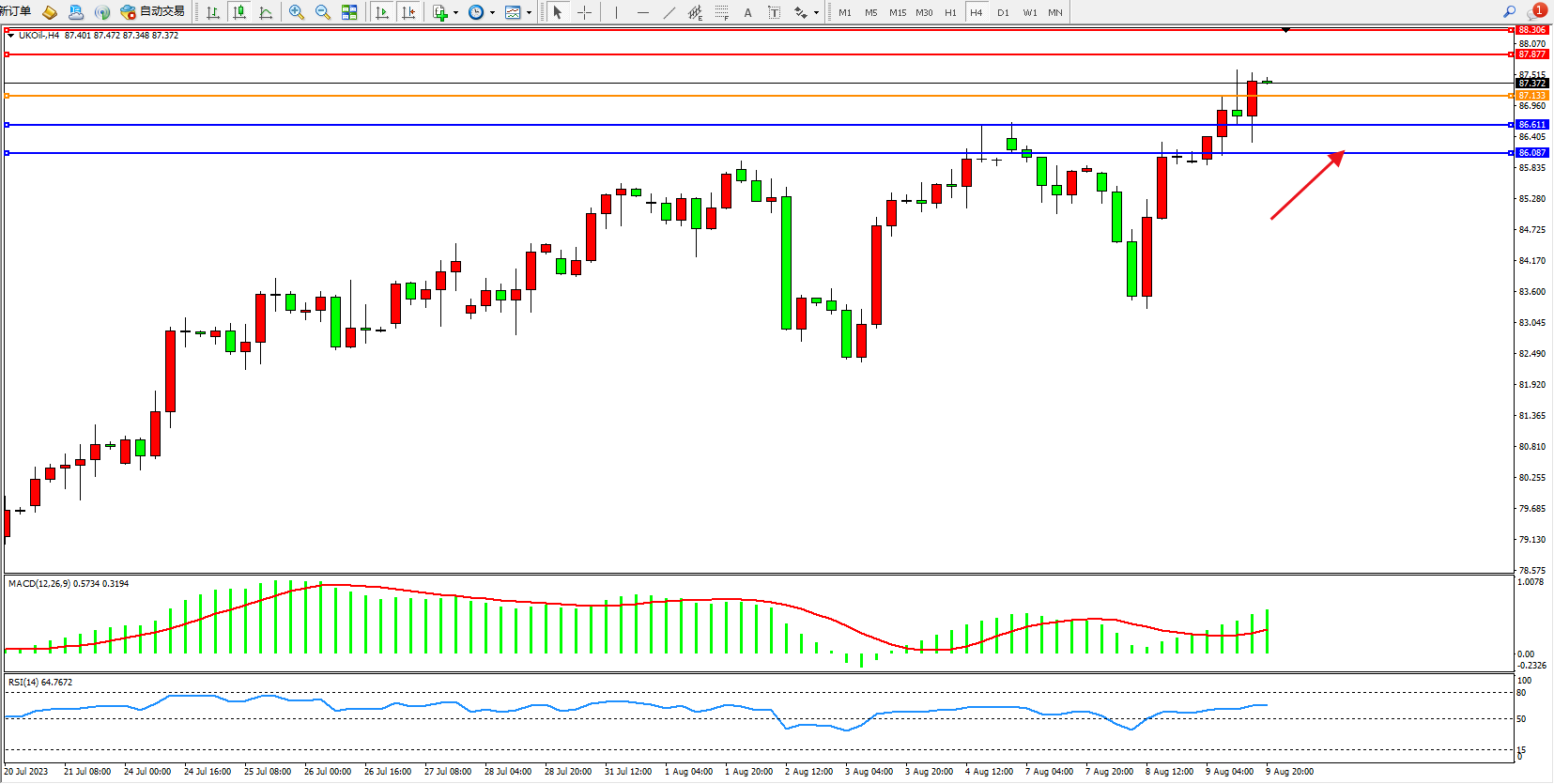 布油UKOil——4小时K线图显示: