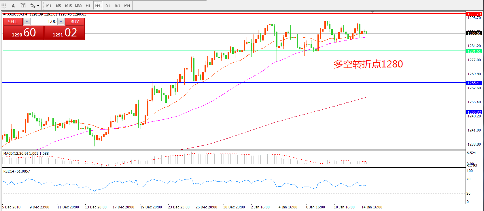 多空转折点:1280.00