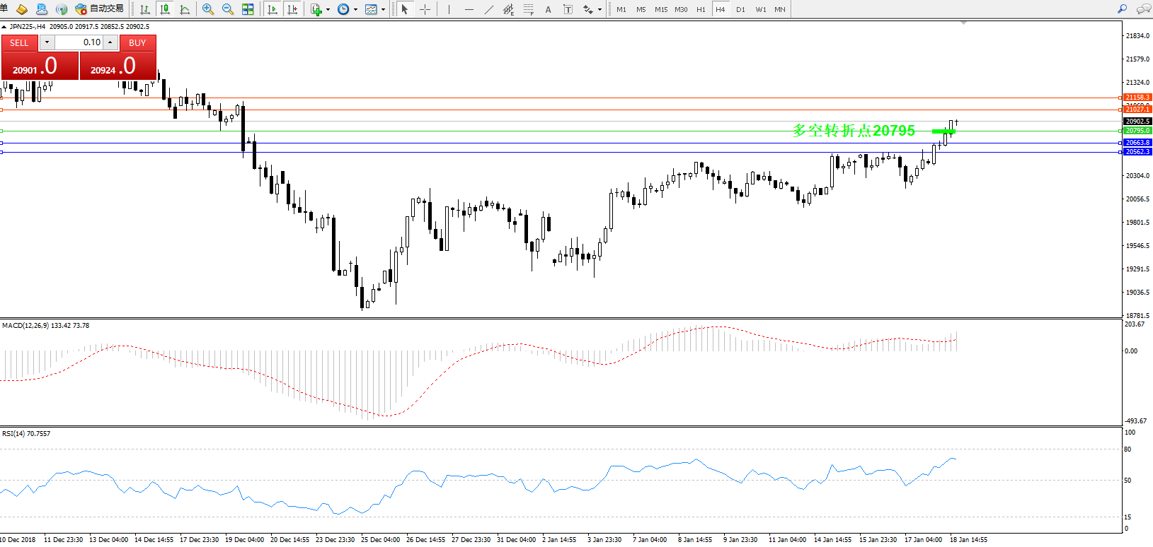 日经指数JPN225——4小时K线图: