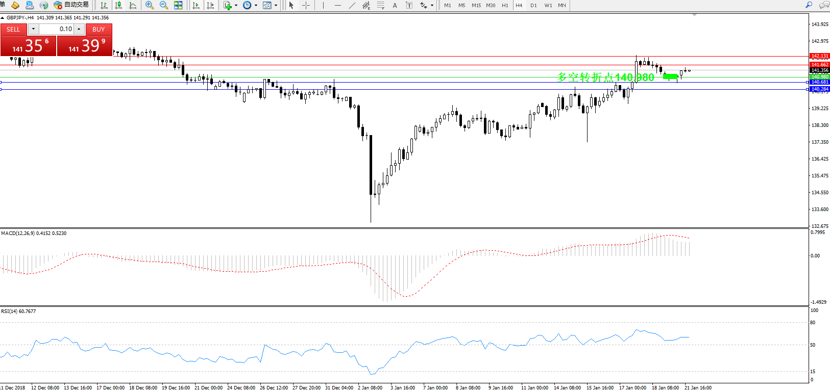 交易策略:140.980上方看涨,目标141.662、142.131