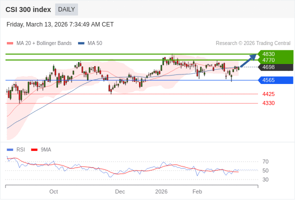 沪深300指数 短线: 在4565之上,看涨。