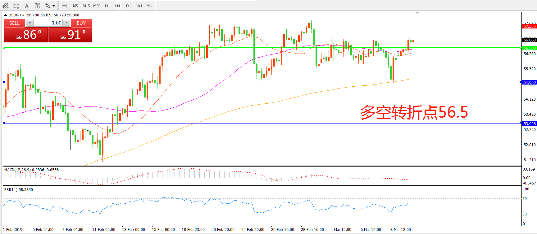 交易策略:在56.50  之上看涨,目标57.50   60.00