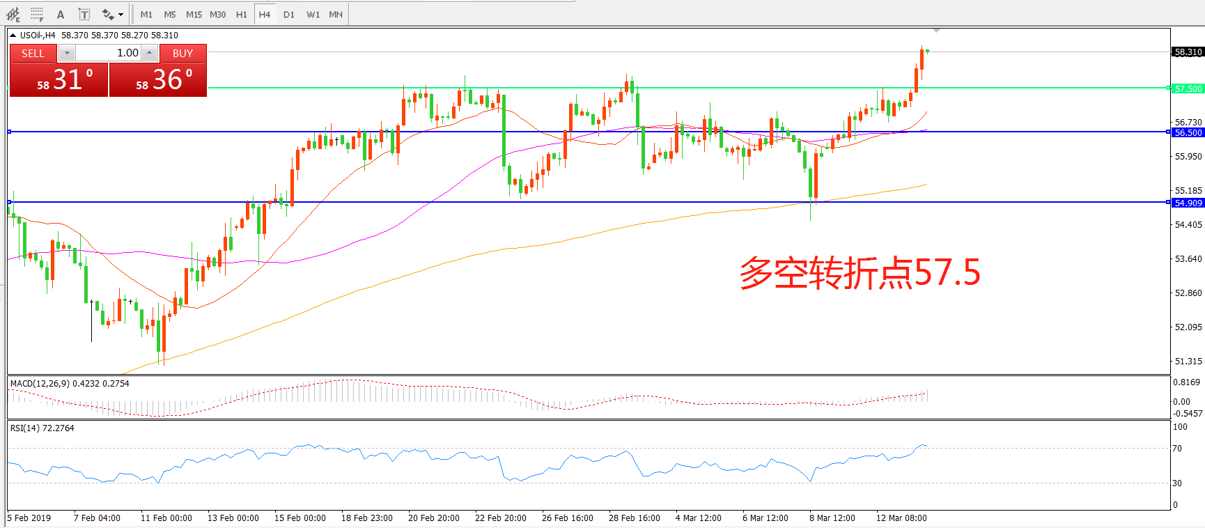 多空转折点:57.50