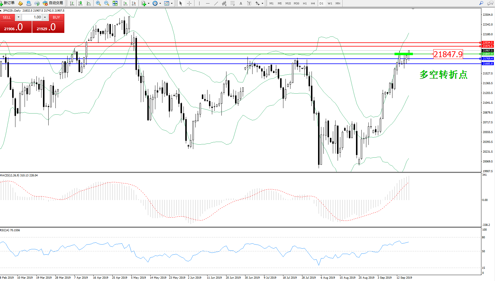 日经225指数918日(周三)收盘下跌24.82点,跌幅0.11%,报21976.50点。从近期的数据来看,日本经济增长势头放缓,通胀走弱,似乎增强了进一步放松货币政策的理由,但是否会倾向于现在就启动新的刺激计划仍值得怀疑。日本10年期国债收益率已重返日央行的非正式目标区间(+/-0.20%),且近期日元强度温和,这使得日央行有更多时间保持观望。预计日央行本周只会对有关利率的前瞻指引作出修正,当前表述为“至少在2020年春季之前维持超低的利率”。但如果下个月消费税上调后需求减弱,日央行将不得不采取实质性的宽松政策。隔夜美联储公布最新的9月利率决议,美联储如期降息25基点,利率调整至1.75-2.00%,符合预期。关注今日日央行决议。