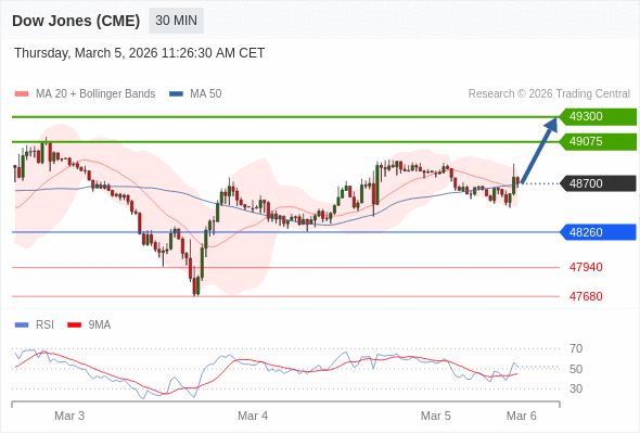 在 48260 之上,看涨,目标价位为 49075 ,然后为 49300 。