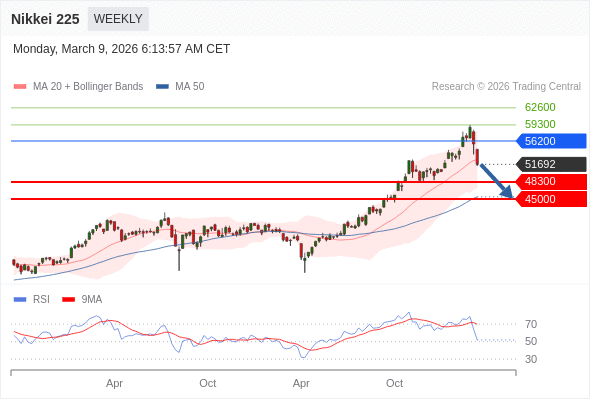 Nikkei 225 中期: 反转向下。