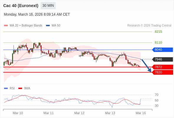 在 8040 之下,看跌,目标价位为 7872 ,然后为 7820 。