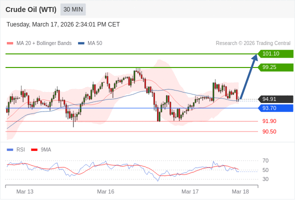 在 93.70 之上,看涨,目标价位为 99.25 ,然后为 101.10 。