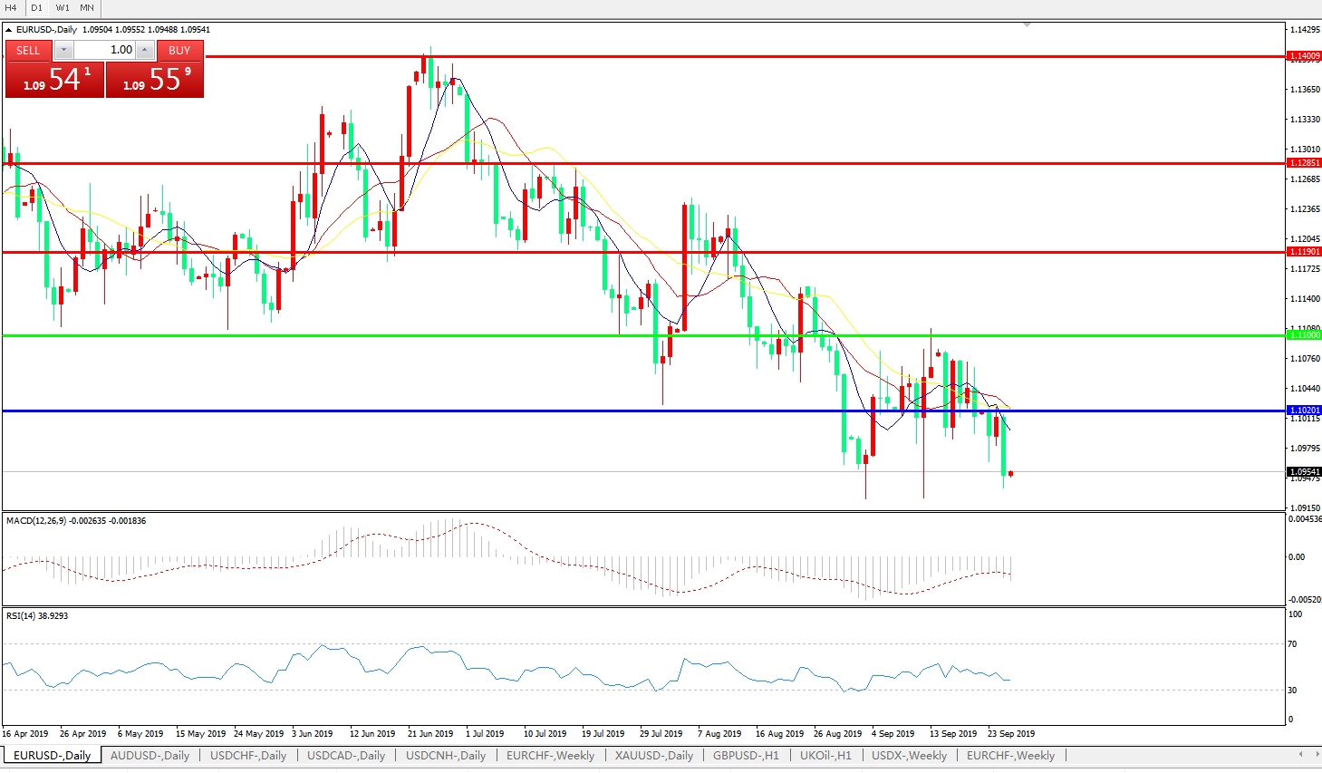 欧元兑美元在周三亚洲时段起重新陷入下行节奏,回吐了隔夜的涨幅,再度失守1.10关口。市场对于以德国为首的欧洲经济体增长前景的顾虑仍在发酵,这盖过了美国政治风波的影响;隔夜,在美国方面再度总统特朗普卷入政治丑闻,可能面临弹劾的消息后,美元指数自高位回落,带动欧系货币反弹,但在周三日内,市场关注焦点再度转向欧洲方面。英国议会日内复会后的脱欧走向不确定性,连同欧元区自身的经济低迷表现,都对欧元汇价构成利空;市场正提前开始关注此后欧洲央行官员的讲话,在本周德国PMI数据降至多年低位后,欧洲央行在领导层更迭之后延续强力宽松似乎已经在所难免,而大家也希望从官员的讲话中得到更多此方面的线索