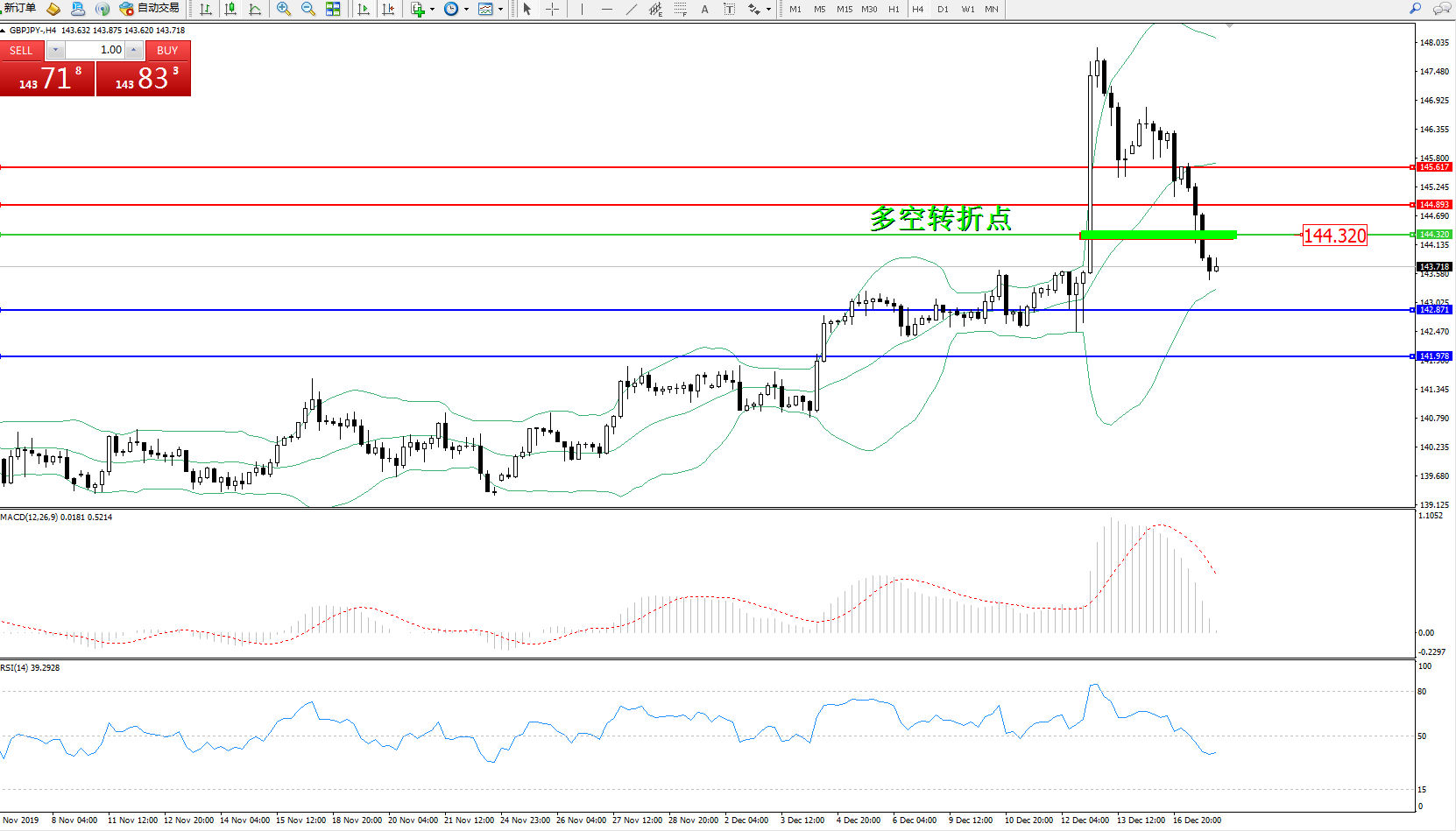 交易策略:144.320下方看跌,目标142.871141.978