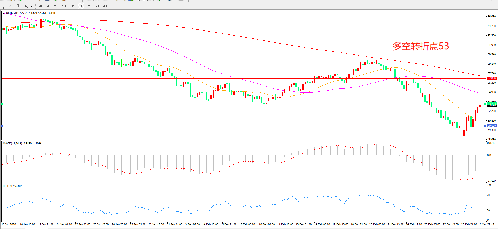 周一(3月2日),美国总统特朗普发推称,美联储主席鲍威尔与美联储的反应迟缓,美国应当拥有最低的利率水平,而日本央行行长黑田东彦发表了一份紧急声明,明确表示将采取必要举措来“稳定金融市场”。全球央行或将再次联手救市的预期提振了市场上的风险情绪,布伦特原油大幅反弹,收报53.04美元/桶。