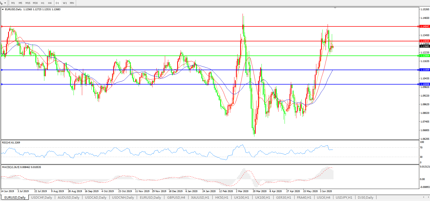 欧元兑美元EURUSD   日线图: