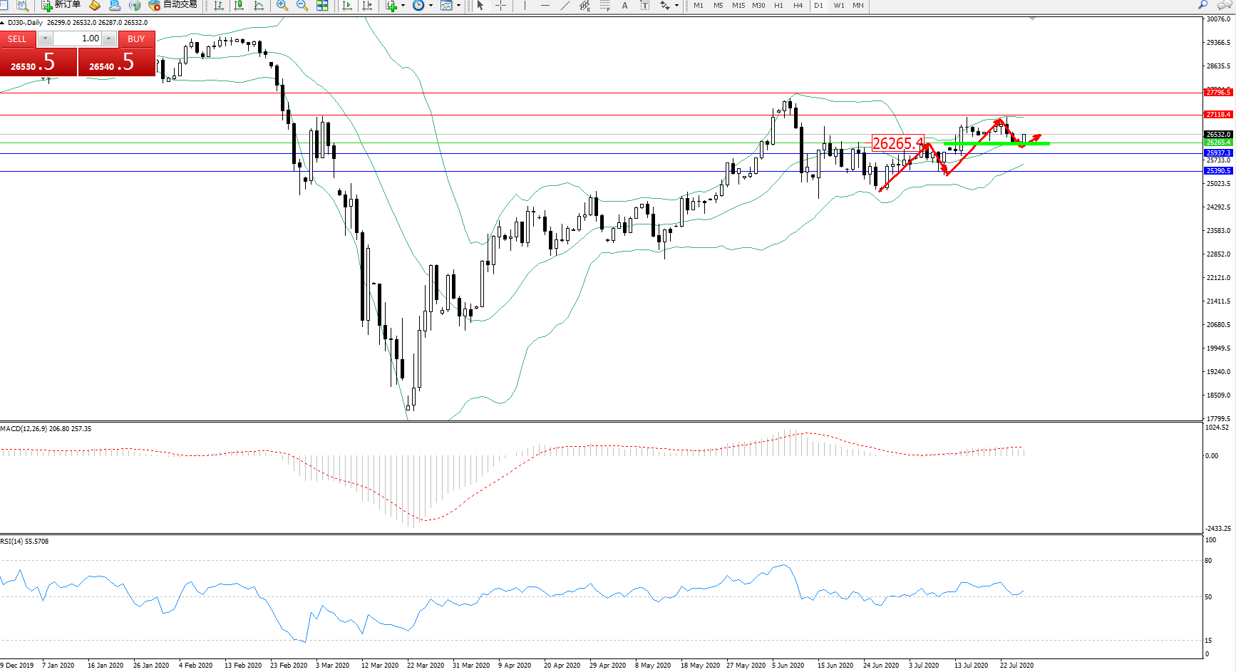 道琼斯指数DJ30—— 日K线图显示: