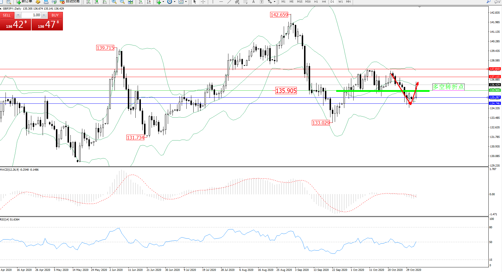 英镑兑日圆低位回升至136.528附近整理,英国首相约翰逊10月31日宣布英格兰地区将从11月5日至12月2日实施全面封锁措施。有内阁大臣认为,封锁预计将延续到明年。据英国《都市日报》消息,约翰逊2日明确表示,英格兰地区的封锁措施将在12月2日结束。报道称,约翰逊告诉议会议员们,“无论如何,这些限制都将在12月2日结束,进一步措施将是下议院的事。”欧盟暂未对英国首相约翰逊改写脱欧协议部分内容的计划立即启动法律行动,称其仍在考虑接下来的行动;欧盟要求英国在10月31日之前回应其诉求,撤销《内部市场法案》的部分内容,称这些内容违反了约翰逊去年与欧盟达成的脱欧协议;唐宁街的一位发言人周二表示,英国尚未回应欧盟的要求;欧盟正在决定是否发布“理由意见书”;一旦发出,表明欧盟已经认定英国违法,在诉诸法庭之前给英国最后一次纠正机会;英国的这项立法威胁破坏英国和欧盟之间的关系,并使双方贸易协定谈判陷入僵局;但是随着谈判的进行,与双方均比较接近的人淡化了这种威胁;各方都看到达成贸易协议的重要性,而且,尽管欧盟对违法问题很严肃,但布鲁塞尔的官员对英国政府缓和局势的努力表示欢迎。