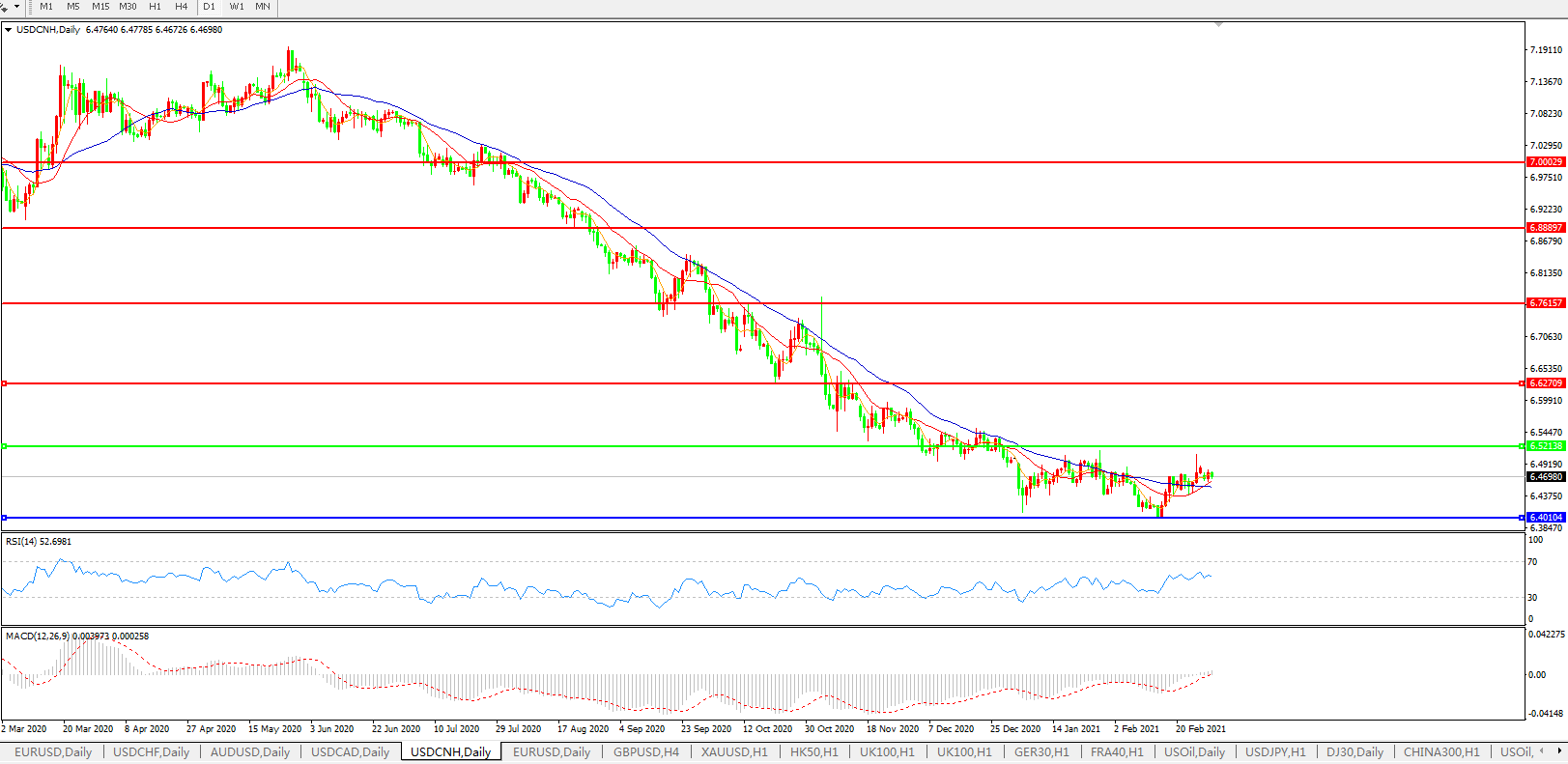 交易策略: 在6.5200之下,看跌,目标价位为6.4000,然后为6.2000