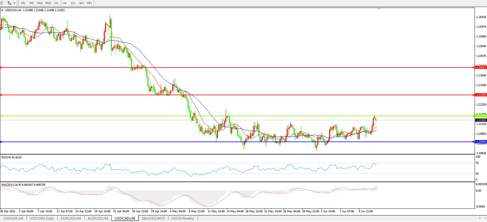 美元兑加元USDCAD 4小时图:
