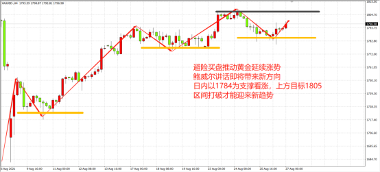 瑞穗证券首席外汇策略师Kengo Suzuki表示,如果鲍威尔真的出其不意发表了鸽派言论(在缩减购债规模之前,劳动力市场需要进一步改善),美元或将承压,金价或能冲击1830美元/盎司,并进一步上升至1862美元/盎司,因为这是6月大跌的起点。