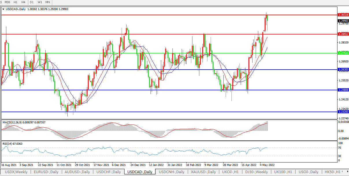 美元兑加元USDCAD 日线图: