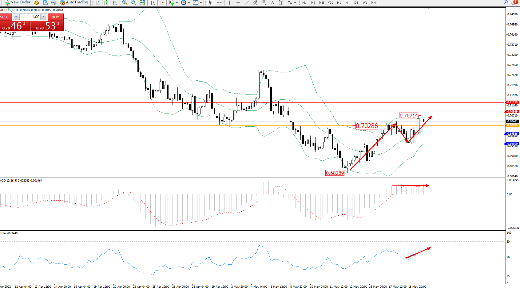 交易策略:0.70286上方看涨,目标0.70869、0.71258