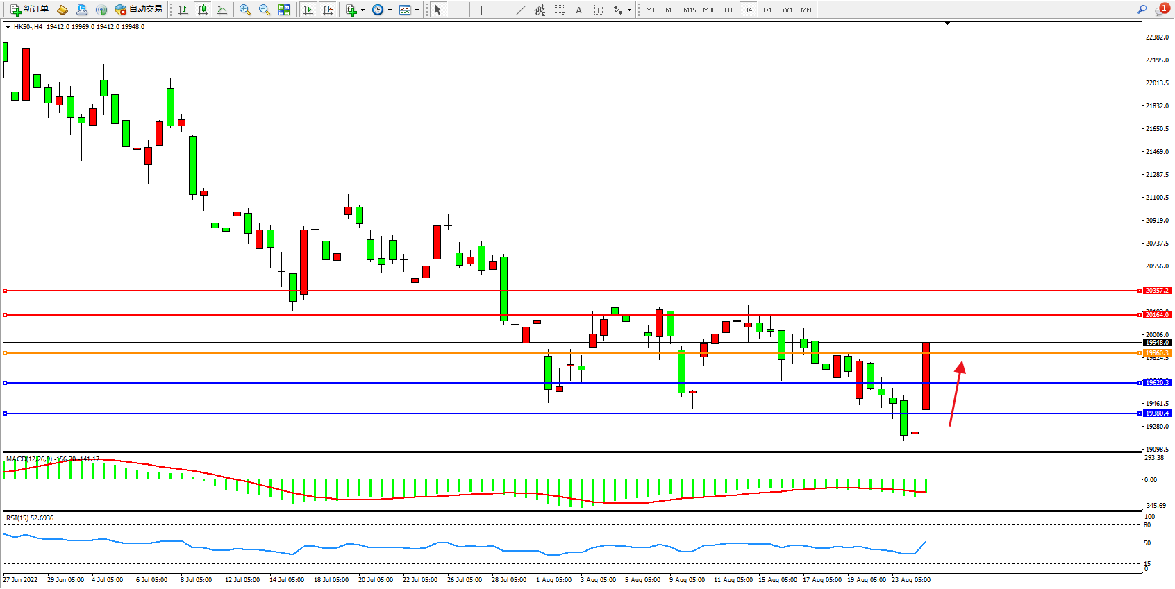 恒指HK50 4小时图