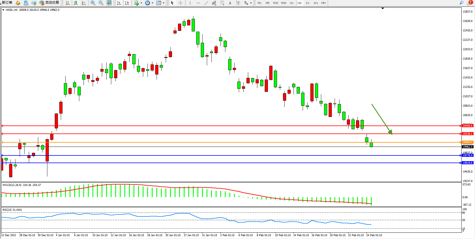 恒指HK50 4小时图