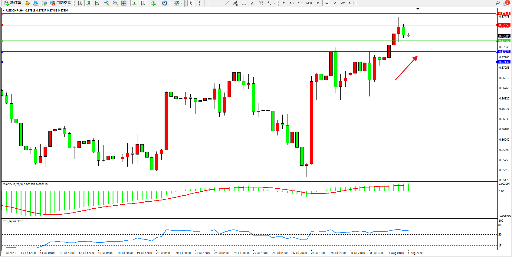 USDCHF:高位上扬