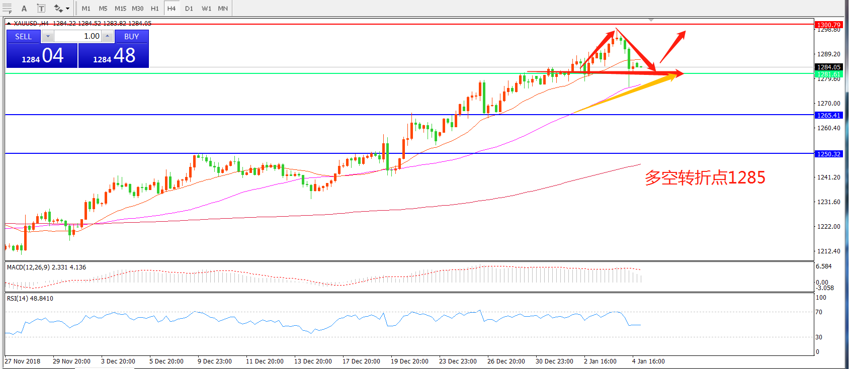 交易策略:在1285.00之上看涨,目标1300.00  1319.00
